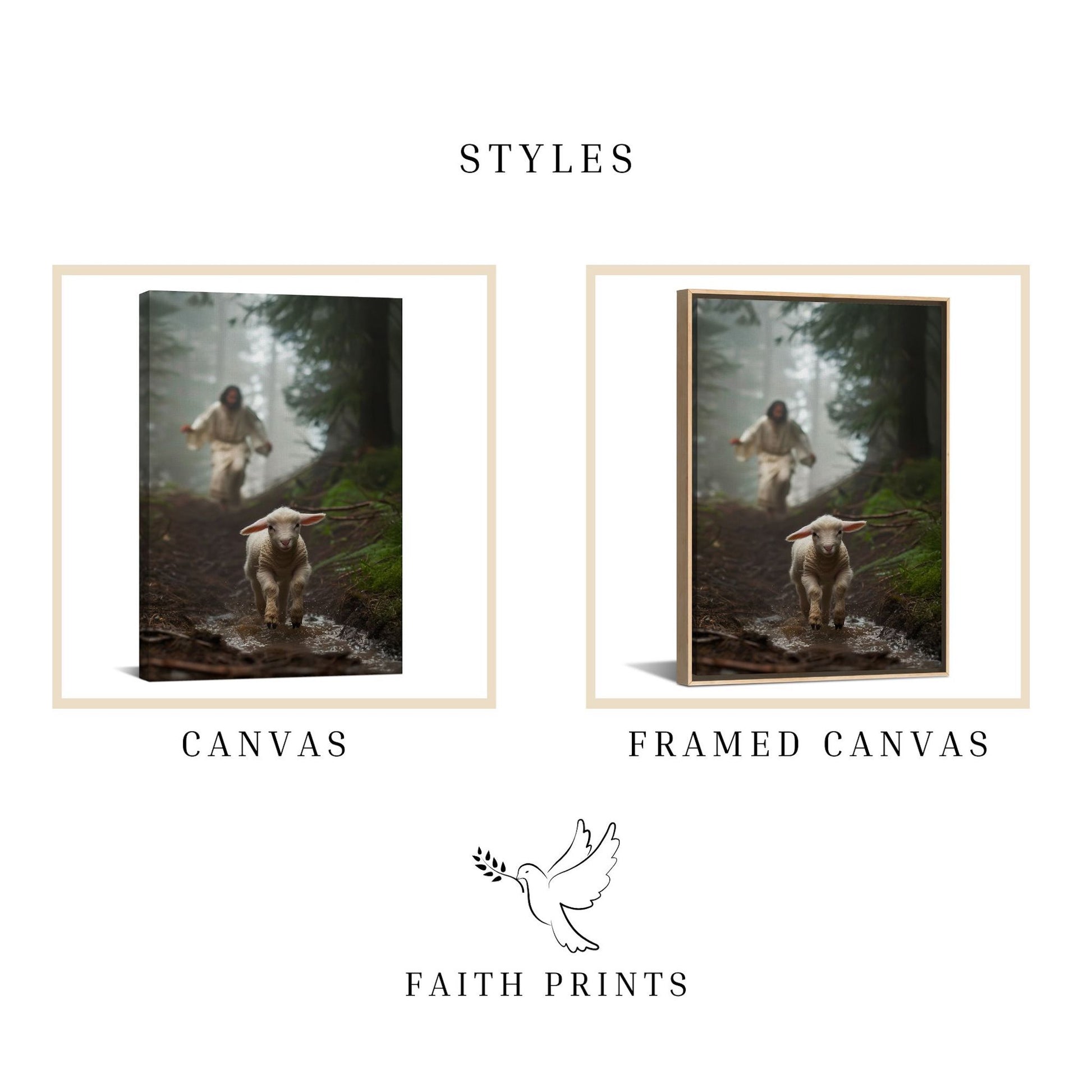 Jesus Running after a Lost Lamb - Canvas